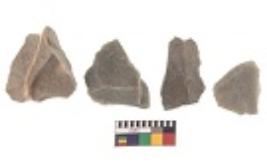 | Description / विवरण | There are n 4 utilized flake cores. There are multidirectional irregular dominant scar pattern on both dorsal and ventral face of the flake cores. One is tapering at one end and three have blunted edges. |