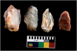 | Description / विवरण | There are n 4 ; worked utilized flakes; there are multidirectional irregular scar pattern on both dorsal and ventral face of the flakes. All are having sharp edges. |