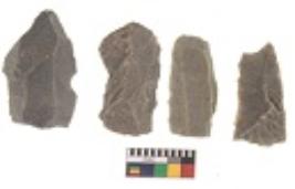 | Description / विवरण | There are n 4 utilized flake cores. There are multidirectional irregular dominant scar pattern on both dorsal and ventral face of the flake cores. Two have sharp edges and two are tapering at one end. |