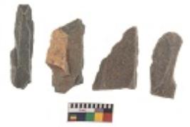| Description / विवरण | There are n 4 utilized flake cores. There are multidirectional irregular dominant scar pattern on both dorsal and ventral face of the flake cores. Two have sharp edges and two are tapering at one end. |