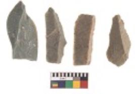 | Description / विवरण | There are n 4 utilized flake cores. There are multidirectional irregular dominant scar pattern on both dorsal and ventral face of the flake cores. Two have sharp edges and two are tapering at one end. |