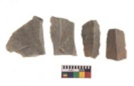 | Description / विवरण | There are n 4 utilized flake cores. There are multidirectional irregular dominant scar pattern on both dorsal and ventral face of the flake cores. Three are tapering at one end and one has blunted edges. |