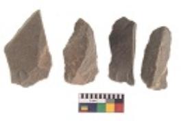 | Description / विवरण | There are n 4 utilized flake cores. There are multidirectional irregular dominant scar pattern on both dorsal and ventral face of the flake cores. Two have sharp edges and two are tapering at one end. |