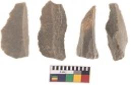 | Description / विवरण | There are n 4 utilized flake cores. There are multidirectional irregular dominant scar pattern on both dorsal and ventral face of the flake cores. Two have sharp edges and two are tapering at one end. |