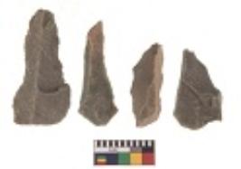 | Description / विवरण | There are n 4 utilized flake cores. There are multidirectional irregular dominant scar pattern on both dorsal and ventral face of the flake cores. Two have sharp edges and two are tapering at one end. |