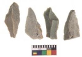 | Description / विवरण | There are n 4 utilized flake cores. There are multidirectional irregular dominant scar pattern on both dorsal and ventral face of the flake cores. Two have sharp edges and two are tapering at one end. |