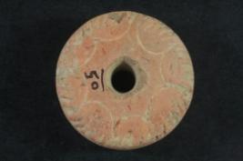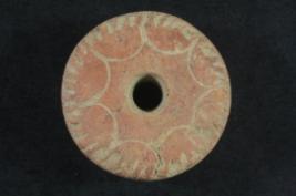 | Description / विवरण | It s a disc made by terracotta. Colour is red and well fired. It is in circular shape & well decorated. Rubbing on the surface and a hole on it. |