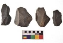 | Description / विवरण | There are n 4 utilized flakes. There are multi directional irregular scar pattern on both dorsal and ventral face of the flakes. One has flat base and three are tapering at one end. |