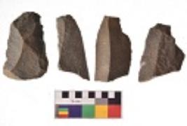 | Description / विवरण | There are n 4 utilized flakes. There are multi directional irregular scar pattern on both dorsal and ventral face of the flakes. Two are tapering at one end and two have blunted edges. |