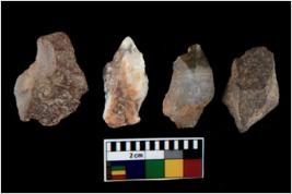 | Description / विवरण | There are n 4 utilized flake cores. Out of them one is made up of Chert and three are made up of Chalcedony. There are multi directional irregular scar pattern on them. All of them are tapering at one end. |