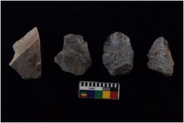 | Description / विवरण | There are n 4 flake cores. All of them are fully fluted flake cores without any trace of crested ridge flakes. Some are tapering at one end. Some have flat base. |