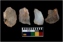 | Description / विवरण | There are n 4 utilized flake cores. There are multi directional irregular scar pattern on them. One is tapering at one end and three have blunted edges. |