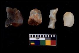 | Description / विवरण | There are n 4 cores; there are multi directional irregular scar pattern on them. Some of them are tapering at one end. 2 chert 1 quartz 1 chalcedony |