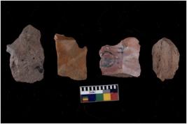 | Description / विवरण | There are n 4 flake cores. All of them are fully fluted flake cores without any trace of crested ridge flakes. Some are tapering at one end and some have blunted edges. |