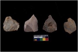 | Description / विवरण | There are n 4 flake cores. All of them are fully fluted flake cores without any trace of crested ridge flakes. Some have flat base. Few have sharp edges whereas some have round edges. |