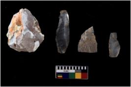 | Description / विवरण | There are n 4 cores; there are multi directional irregular scar pattern on them. Some of them are tapering at one end. 1 chert 3 quartz |