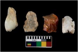 | Description / विवरण | There are n 4 ; worked utilized flakes; there are multidirectional irregular scar pattern on both dorsal and ventral face of the flakes. All are having sharp edges. |
