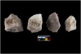 | Description / विवरण | There are n 4 utilized flake cores. There are multidirectional irregular scar pattern on both dorsal and ventral face of the flake cores. One has sharp edges and three have blunted edges. |