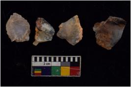 | Description / विवरण | There are n 4 of utilized worked cores and show scar pattern. One has a flat base. |