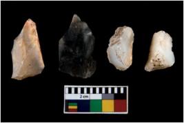 | Description / विवरण | There are n 4 ; worked utilized flakes; there are multidirectional irregular scar pattern on both dorsal and ventral face of the flakes. All are having sharp edges. |