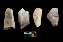 | Description / विवरण | There are n 4 utilized flake cores. There are multidirectional irregular scar pattern on both dorsal and ventral face of the flake cores. One has sharp edges and three have blunted edges. |