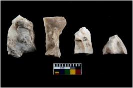 | Description / विवरण | Specimen of flake tools with prominent flaking marks. They are made up of a short flakes with sides trimmed. |