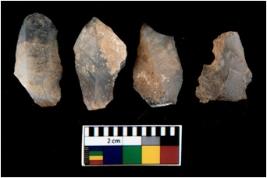 | Description / विवरण | There are n 4 utilized flake cores. There are multi directional irregular scar pattern on them. All of them are tapering at one end. |