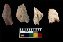 | Description / विवरण | There are n 4 utilized flake cores. Out of them one is made up of Chalcedony and three are made up of Chert. There are multi directional irregular scar pattern on them. Two are tapering at one end and two have blunted edges. |
