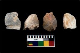 | Description / विवरण | There are n 4 utilized flake cores. Out of them one is made up of Chalcedony and three are made up of Chert. There are multi directional irregular scar pattern on them. Two have blunted edges and two have round edges. |