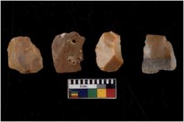 | Description / विवरण | There are n 4 flake cores. All of them are fully fluted flake cores without any trace of crested ridge flakes. Some have flat base. Few have sharp edges whereas some have round edges. |
