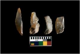| Description / विवरण | There are n 4 utilized flake cores. There are multi directional irregular scar pattern on them. All of them are tapering at one end. |
