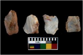 | Description / विवरण | There are n 4 utilized flake cores. There are multi directional irregular scar pattern on them. Two have blunted edges and two have round edges. |