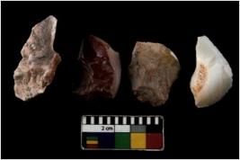 | Description / विवरण | There are n 4 ; worked utilized flakes; there are multidirectional irregular scar pattern on both dorsal and ventral face of the flakes. All are having sharp edges. |