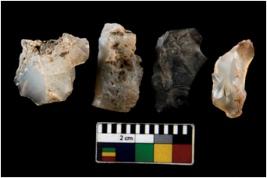 | Description / विवरण | There are n 4 ; worked utilized flakes; there are multidirectional irregular scar pattern on both dorsal and ventral face of the flakes. All are having sharp edges. |