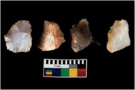 | Description / विवरण | There are n 4 ; worked utilized flakes; there are multidirectional irregular scar pattern on both dorsal and ventral face of the flakes. All are having sharp edges. |