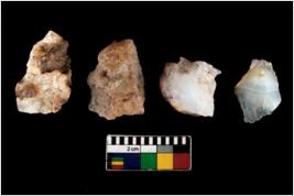 | Description / विवरण | There are n 4 ; worked utilized flakes; there are multidirectional irregular scar pattern on both dorsal and ventral face of the flakes. All are having sharp edges. |