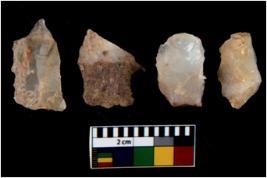 | Description / विवरण | There are n 4 utilized flake cores. There are multi directional irregular scar pattern on them. All of them are tapering at one end. |