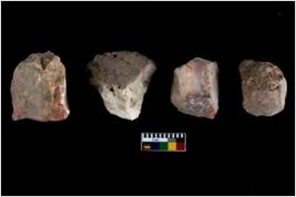 | Description / विवरण | There are n 4 utilized flake cores. There are multidirectional irregular scar pattern on both dorsal and ventral face of the flake cores. One has sharp edges and three have blunted edges. |