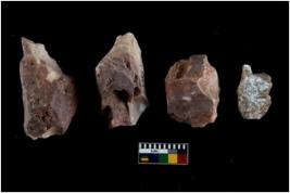| Description / विवरण | There are n 4 utilized flake cores. There are multidirectional irregular scar pattern on both dorsal and ventral face of the flake cores. One has sharp edges and three have blunted edges. |