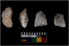 | Description / विवरण | There are n 4 flake cores. All of them are fully fluted flake cores without any trace of crested ridge flakes. Some have flat base. Few have sharp edges whereas some have round edges. |