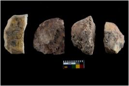 | Description / विवरण | Specimen of flake tools with prominent flaking marks. They are made up of a short flakes with sides trimmed. |