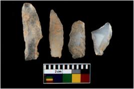 | Description / विवरण | There are n 4 utilized flake cores. There are multi directional irregular scar pattern on them. All of them are tapering at one end. |