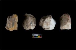 | Description / विवरण | Specimen of flake tools with prominent flaking marks. They are made up of a short flakes with sides trimmed. |