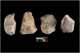 | Description / विवरण | There are n 4 utilized flake cores. There are multidirectional irregular scar pattern on both dorsal and ventral face of the flake cores. One has sharp edges and three have blunted edges. |