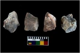 | Description / विवरण | There are n 4 utilized flake cores. There are multidirectional irregular scar pattern on both dorsal and ventral face of the flake cores. One has sharp edges and three have blunted edges. |