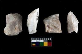 | Description / विवरण | Specimen of flake tools with prominent flaking marks. They are made up of a short flakes with sides trimmed. |
