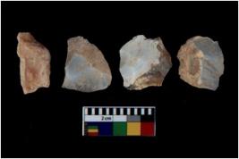 | Description / विवरण | There are n 4 utilized flake cores. Out of them three are made up of Chalcedony and one is made up of Chert. There are multi directional irregular scar pattern on them. Three have blunted edges and one has round edge. |