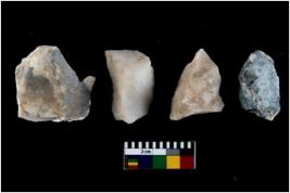 | Description / विवरण | There are n 4 utilized flake cores. There are multidirectional irregular scar pattern on both dorsal and ventral face of the flake cores. One has sharp edges and three have blunted edges. |