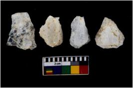 | Description / विवरण | There are n 4 utilized flake cores. Two have blunted edges and two have round edges. |