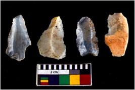 | Description / विवरण | There are n 04 objects; among them three are made up of quartz and one is of chert, all of them have uneven form. Some are tapering at one end. |